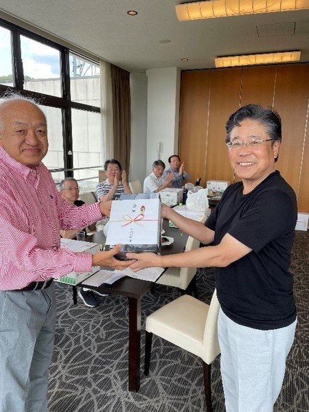 優勝したのは、コンペ幹事の大学 30 回望月浩吉さん。ゴルフクラブの忖度があったのではとの声もありましたが、「そんなことは一切なくパートナーとハンデに恵まれました。」 と喜びの声。出席者全員が一言ずつ感想を出し合い、秋の陣を約束し解散しました。