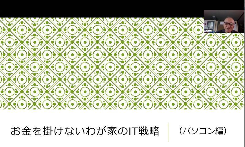 2024年4月17日信陵会館において今年度2回目(通算103回目)の三水会が開催され田畑金悟氏(大35回)による「お金を掛けないわが家のIT戦略(パソコン編)」を拝聴しました。