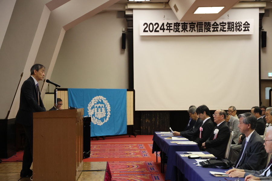 2024年度の東京信陵会定期総会が学士会館で開催されました。学士会館は今年いっぱいで閉館し、取り壊しが決まっていますので、今回が最後の開催となります。(来年の開催場所は現在、選定中です)今年は台湾から高田先生が、ゼミ生の阿部淳さんの講演を聞きにいらっしゃいました。また山形から村川徹さん、仙台信陵会会長の庄子信利さん、漕艇部OBが仙台、福島、栃木から数多く出席頂きました。来賓は信陵同窓会前会長の佐藤慶吾さん、経済経営学類長の井上健さん、福島ゆかりの会(鈴木恒雄さんが副会長)のご縁で、元ミスピーチの3名にご出席いただきました。本来なら菅野健二会長(6月8日の常任理事会で交代済)のご出席のはずですが、所用とのことで、佐藤前会長においでいただきました。事務員の後藤さんから花束、鈴木恒雄会長から麦わら帽子の贈呈がありました。 午後は立食による宴席で、乾杯は2019年卒(=大67回卒)の瀬川将也さんの発声で始まりました。1974年卒(=大22回卒)の岡本剛さん(静岡県在住、元信夫寮生)が演芸披露を行いました。最後は学生歌を歌いましたが、基準にした福島大学混声合唱団の歌唱とテンポが合わないことがわかりましたので、新たに1.3倍速の修正版 (YouTubeです 音声に注意!)を用意いたしました。今後の学生歌斉唱でご利用ください。