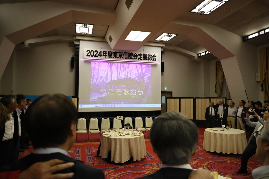 学生歌 を全員で熱唱しました。最後は東京信陵会の三浦博さんによる一本締めで終了しました。