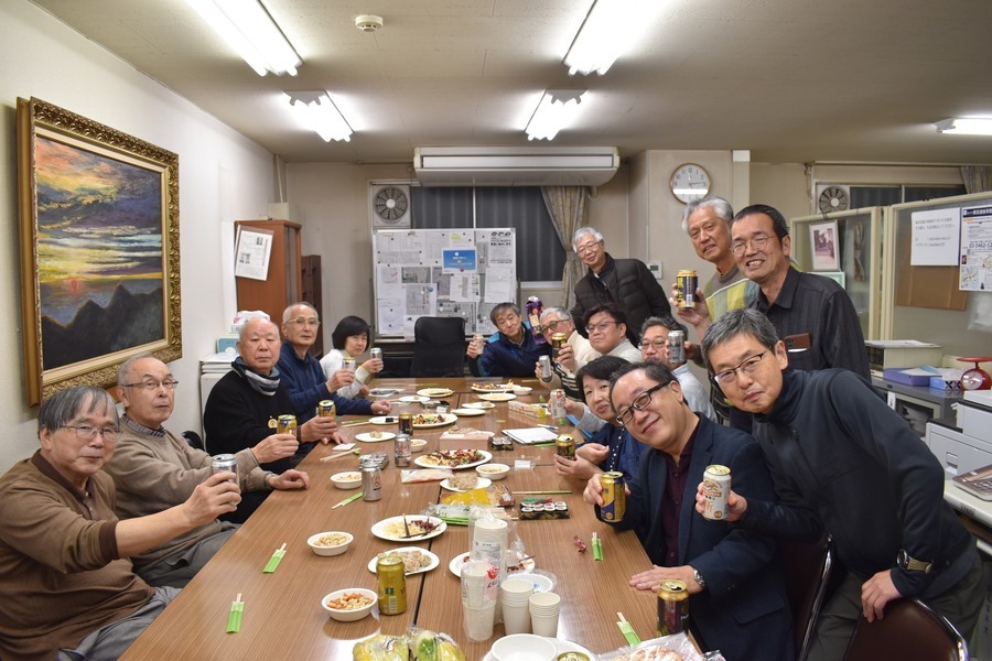 *前列左から日野、木村、小西、渡部、志賀、寺島、後列左から中川、国乗、新保、大隅、星、安達(小林は途中退席) (文責・写真:志賀)
