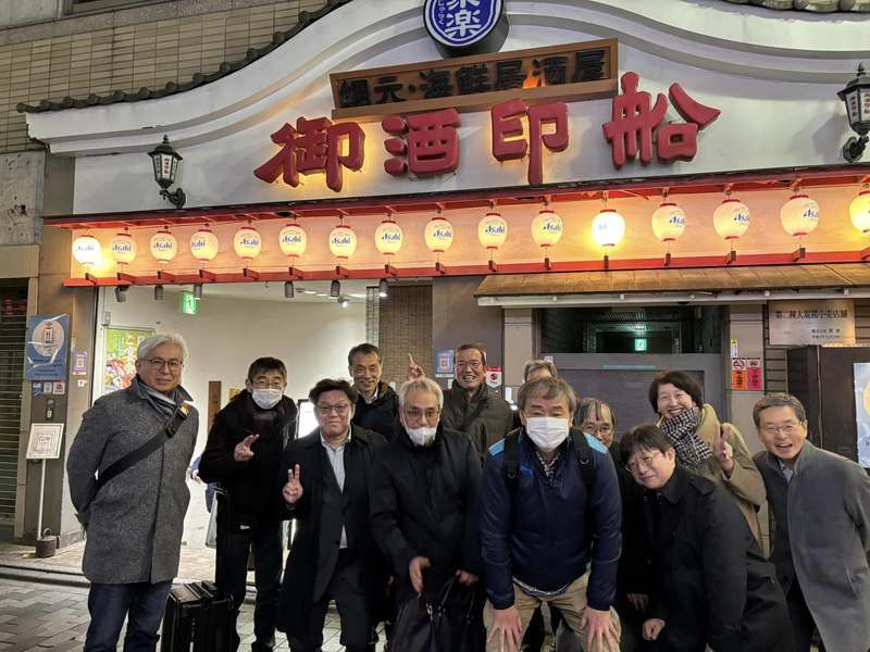 大学同窓会の若手(?)中心の三水会(勉強会)忘年会 会場は新宿の「御朱印船」ならぬ「御酒印船」同窓会の後輩が役員を務めていた会社が経営しています。隔月第三水曜に開催し計100回を超える伝統ある会になりました(^^)