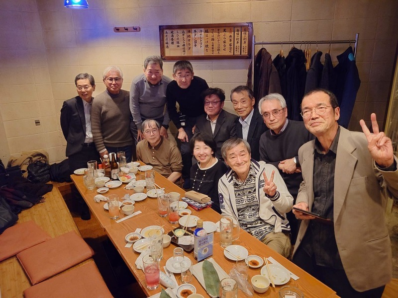3) 生涯司会の加藤孝雄君の元気で歯切れの良い抜群の機転に富んだ名司会の下、2025年に逝去された田中展子さん、渡辺英雄君ら多くの逝去者に黙とうをささげ、献杯のあと、歓談が始まった。お互いの元気を喜び、最近何している? 家族・孫は元気か? 体調管理・認知症対策は何をしている? などの話題が飛び交い、以下の近況報告があった。