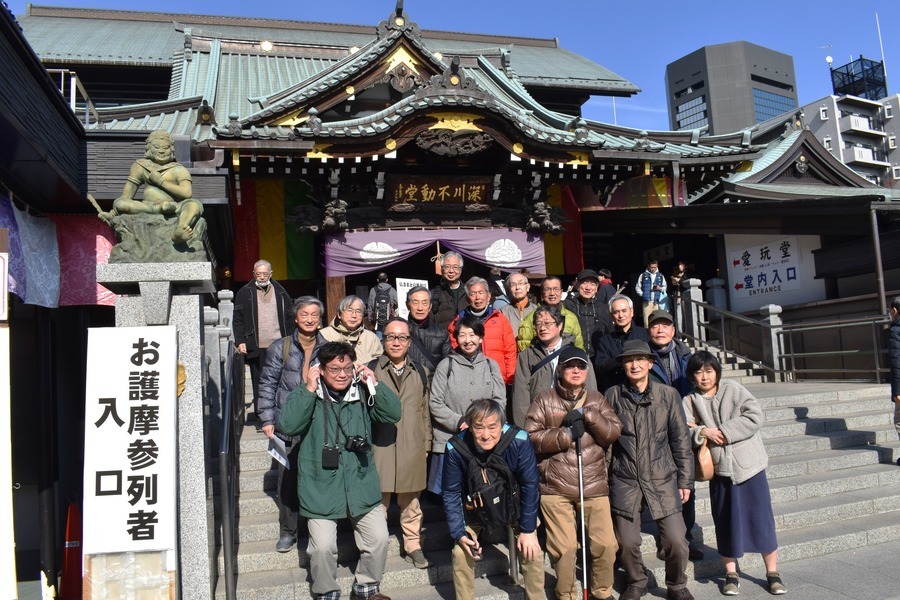 【信陵会ウォーキング・深川不動から勝鬨橋】 今年初めてのウォーキングは、深川不動から富岡八幡を経由して勝鬨橋まで歩き、月島でもんじゃ焼き懇親会という趣向でした。幸い低気圧の通過で天気が崩れる予想の前日の開催になり、天気にもめぐまれ、19名というたくさんの参加をいただきました。深川不動尊は節分会前日ということで、護摩法要の参拝者の列も長く続き大変な賑わいでした。今回は副部長白川さんの企画・案内でした。白川さんどうもありがとうございました。 次回は3月29日(土)に、今年のNHK大河ドラマ「べらぼう」にちなんで、浅草から吉原周辺巡りを計画しています。