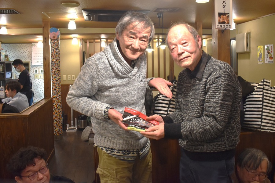 2025年1月25日(土)まねきねこ渋谷本店にて吟醸庄助会を3時間にわたって開催しました。参加者は13名。最年長の渡辺さん御年90歳ですが、ハリのある素晴らしい歌声です。今回初参加は板垣さん、今後もよろしくお願いいたします。鈴木会長の恒例のじゃんけん大会の勝者は高橋さん。レクサスのグッズはこれが最後とのことです。