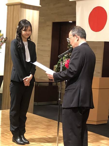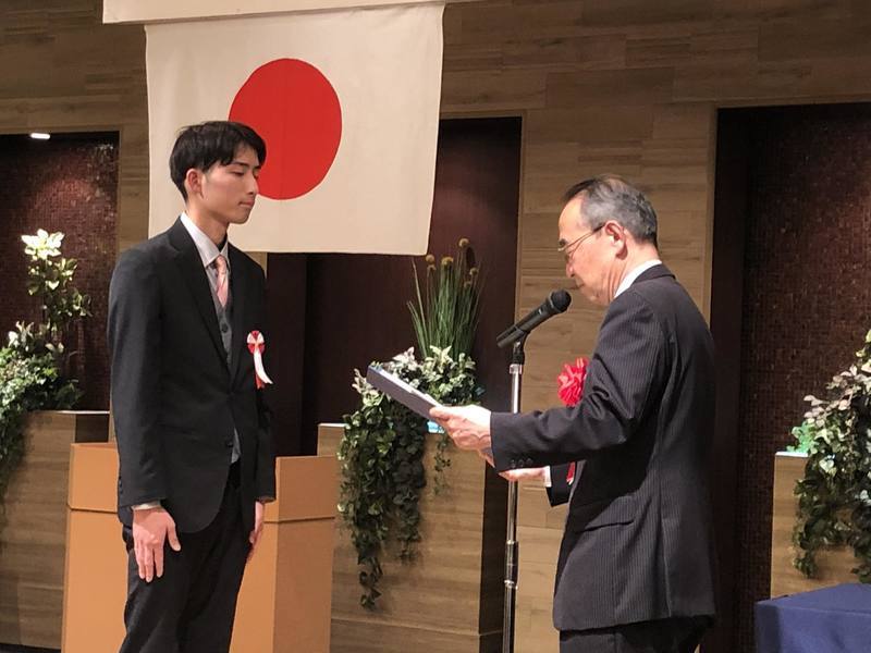 写真説明 上段左から、S棟前広場の立看板、S棟前広場の様子、飯塚毅賞受賞者のみなさん、学長賞受賞者の阿部知樹さん 下段左から、学類長賞受賞者のみなさん、受賞者代表謝辞の牧田春花さん、鈴木恒雄東京信陵会会長の乾杯、萱場道夫仙台信陵会会長の万歳三唱