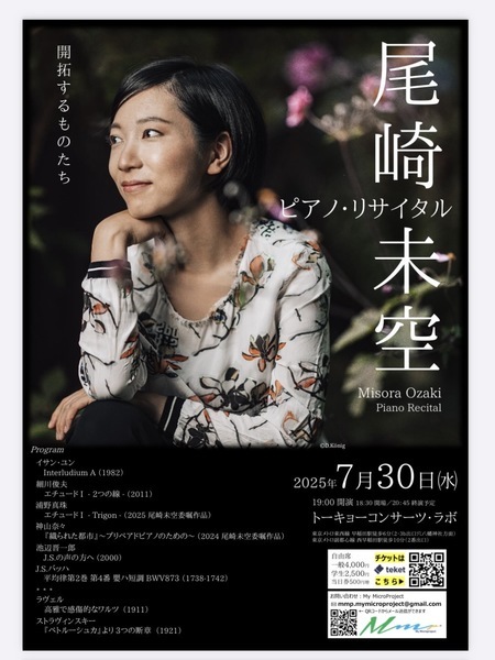 2025年7月30日(水)に開催される新宿区の東京コンサーツ・ラボで行われる尾崎未空さんのピアノリサイタルにて、福島大学出身の浦野真珠さんの作品「エチュード I - Trigon - 」が演奏されます。(浦野さんから東京信陵会事務局へ直接のご連絡があり掲載する運びとなりました)