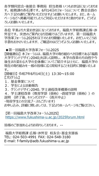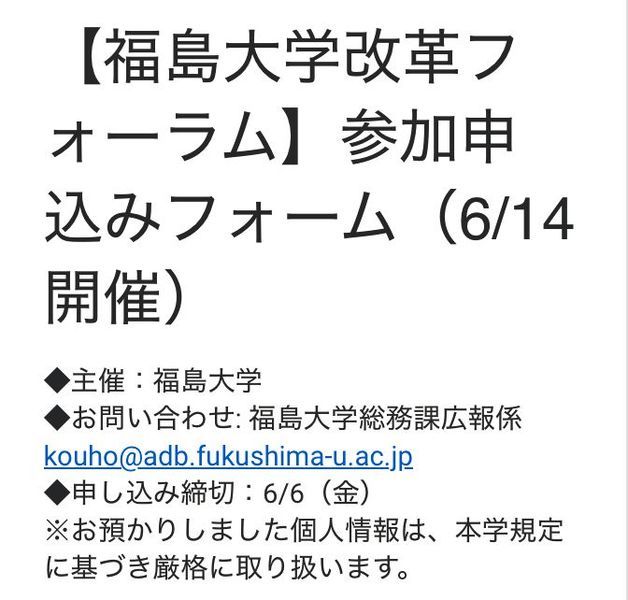 標記イベントの連絡が福島大学総務課より来ましたので展開いたします。校友会で催す行事の一環です。ZOOMなどの遠隔会議の設定は、どのセッションにもありません。(同日、信陵会本部は常任理事会を開催中ですが、説明内容は前述の記者会見と同じ内容ですので、こちらのイベントは参加しません)