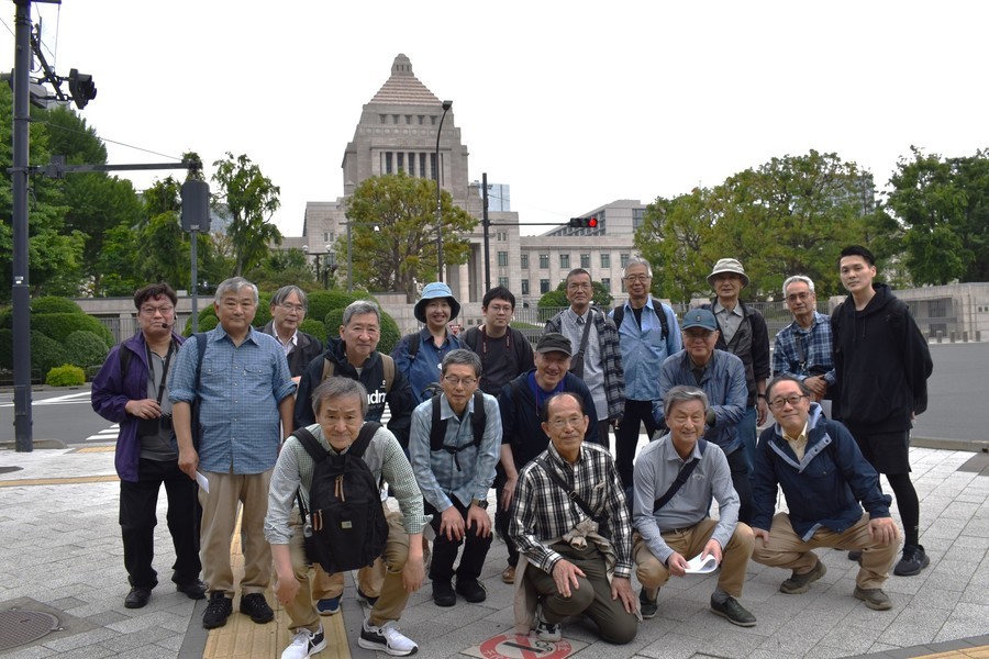 今回は新歓ウォーキングと称して「東京の中心」国会議事堂から霞ヶ関、日比谷公園を抜けて、銀座の木村屋までの行程を19名完歩致しました。昨日までの夏日から、4月の平均気温まで下がり、かつ、曇天で、ある意味ウォーキング日和となりました。打ち上げは信陵会館の「居酒屋・信陵会館」にて開催いたしました。6月~8月は暑すぎるのでお休み、次回は9月、レインボーブリッジを芝浦ふ頭から歩いて渡り、台場で打ち上げを行う企画を考えています。