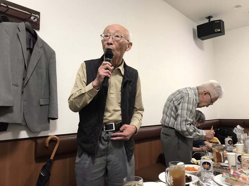 3) 生涯司会の加藤孝雄君の元気で歯切れの良い抜群の機転に富んだ名司会の下、主幹事の 田中克房君(福島)の開会宣言、土田宏禅君(郡山)の乾杯にて歓談が始まった。お互いの元気 を喜び、最近何している? 家族・孫は元気か? などの輪ができ、以下の近況報告があった。