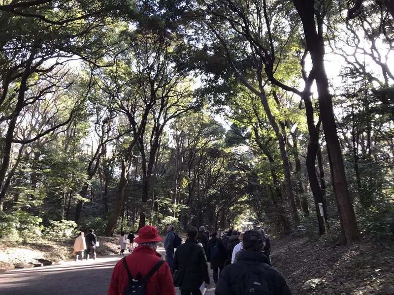 今回のウォーキングは、JR千駄ヶ谷駅から原宿駅まで、ぐるぐる巡って約10㎞の工程でした。明治天皇と昭憲皇太后をお祀りする明治神宮では、普段あまり気に留めない明治神宮の造営にかかわった先人にも思いをはせて歩いてきました。日中少し暖かさも感じる好天の中、20名の参加をいただき、皆さん元気に完歩し、電車で渋谷に移動したあと信陵会館で懇親会を催しました。 次回は4月終わりごろに西新井大師、舎人公園など足立区巡りを予定しています。