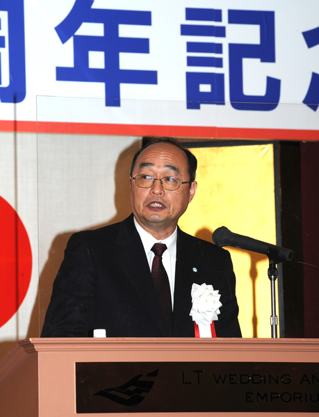 来賓紹介に移り、壇上に居並ぶ鈴木正晃副知事、木幡浩福島市長、渡邊博美福島県商工会議所連合会長(福島商工会議所会頭)=大学18回、佐藤稔東邦銀行頭取=大学31回、樋口郁雄福島信用金庫理事長、芳見弘一福島民報社社長、菊池克彦福島民友新聞社常務取締役を紹介しました。