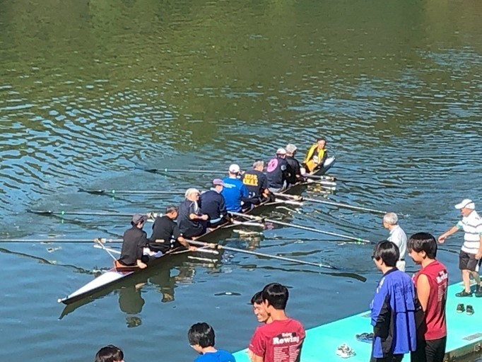 エイトは50年以上も前のもの(木製、今は艇もオールもカーボン製)で、あちこち傷みが見られます。今回の乗艇にあたり前もって修理作業を致しましたが、福島医大のボート部から数人手伝ってくれました。医大ボート部は部員数が50人もいるとかで、実に羨ましく話を聞いておりました。